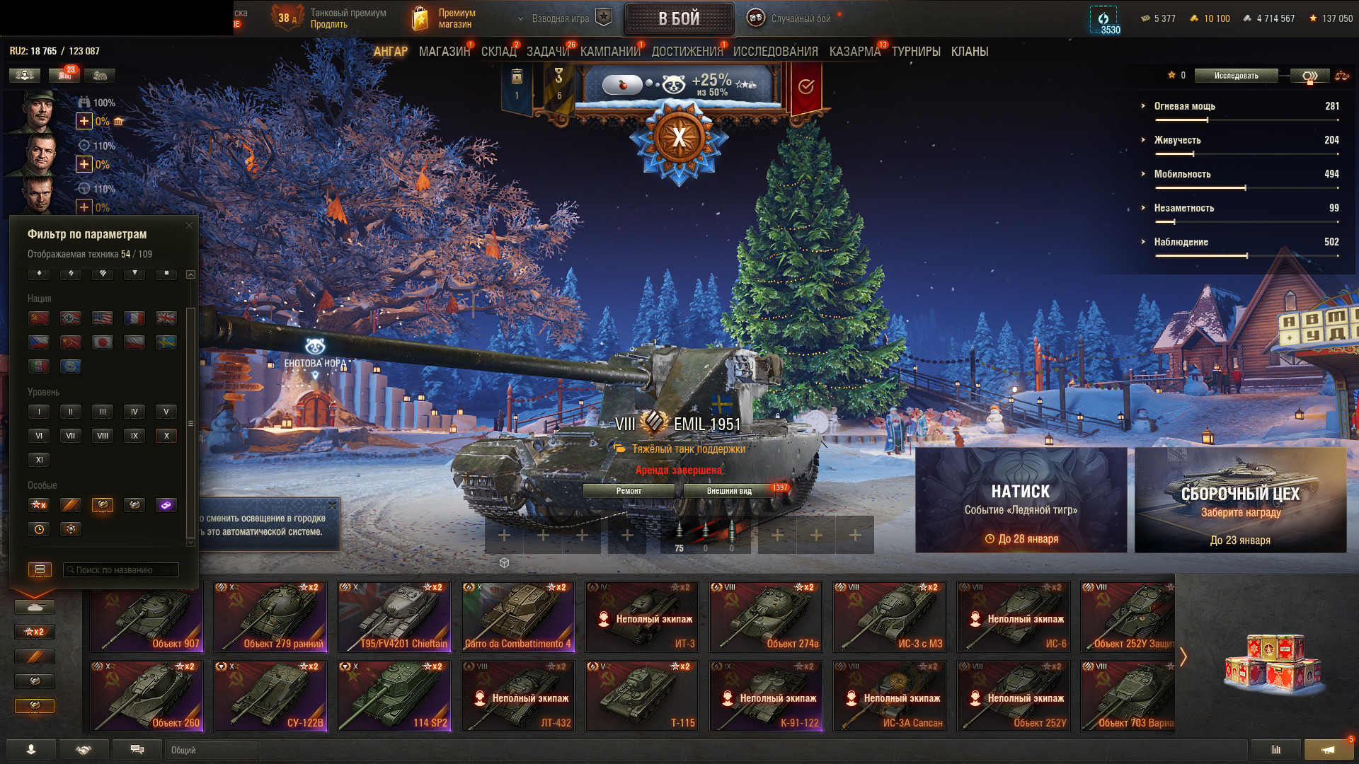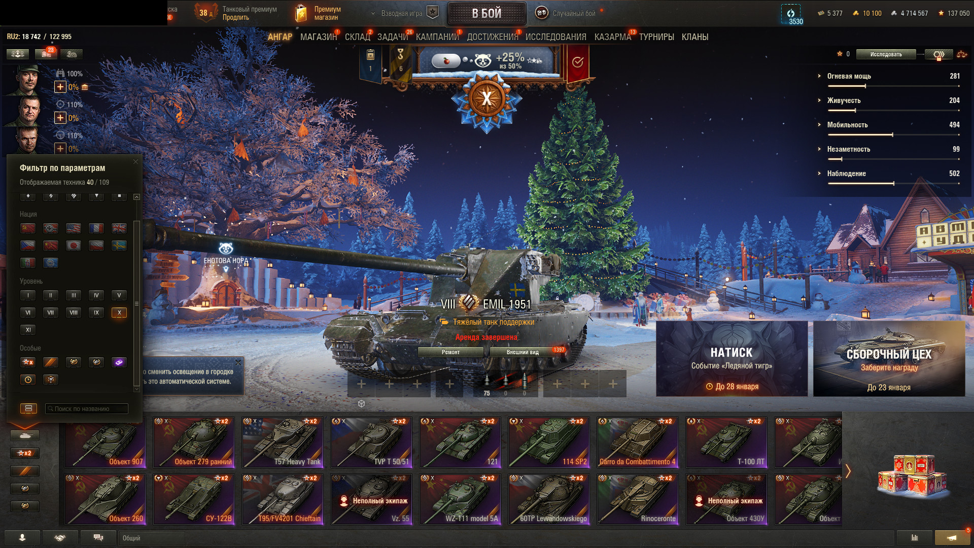 - 53 Premium танка + T95/FV4201 Chieftain, Объект 279 ранний, Объект 907