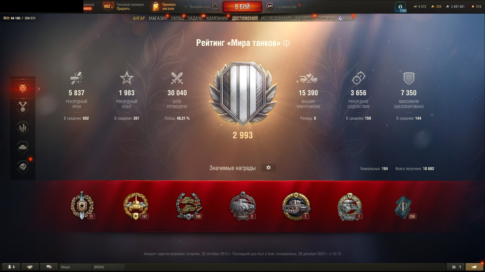 Аккаунт 11 топов, 120 AC «Gendarme», Grayhound, 30 040 боев